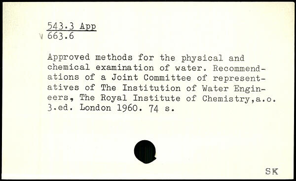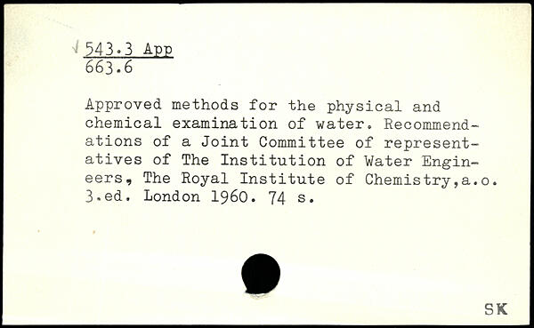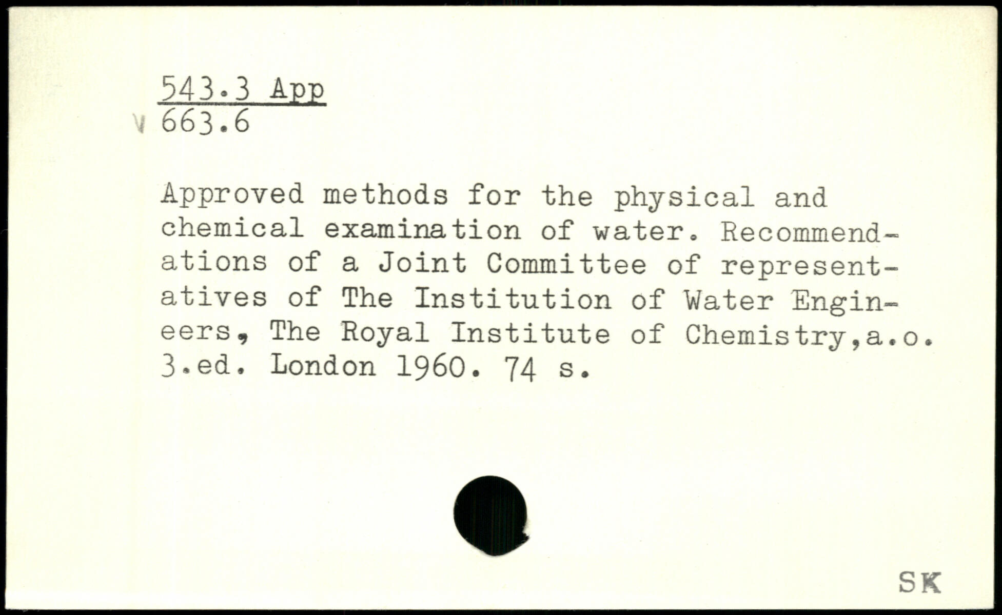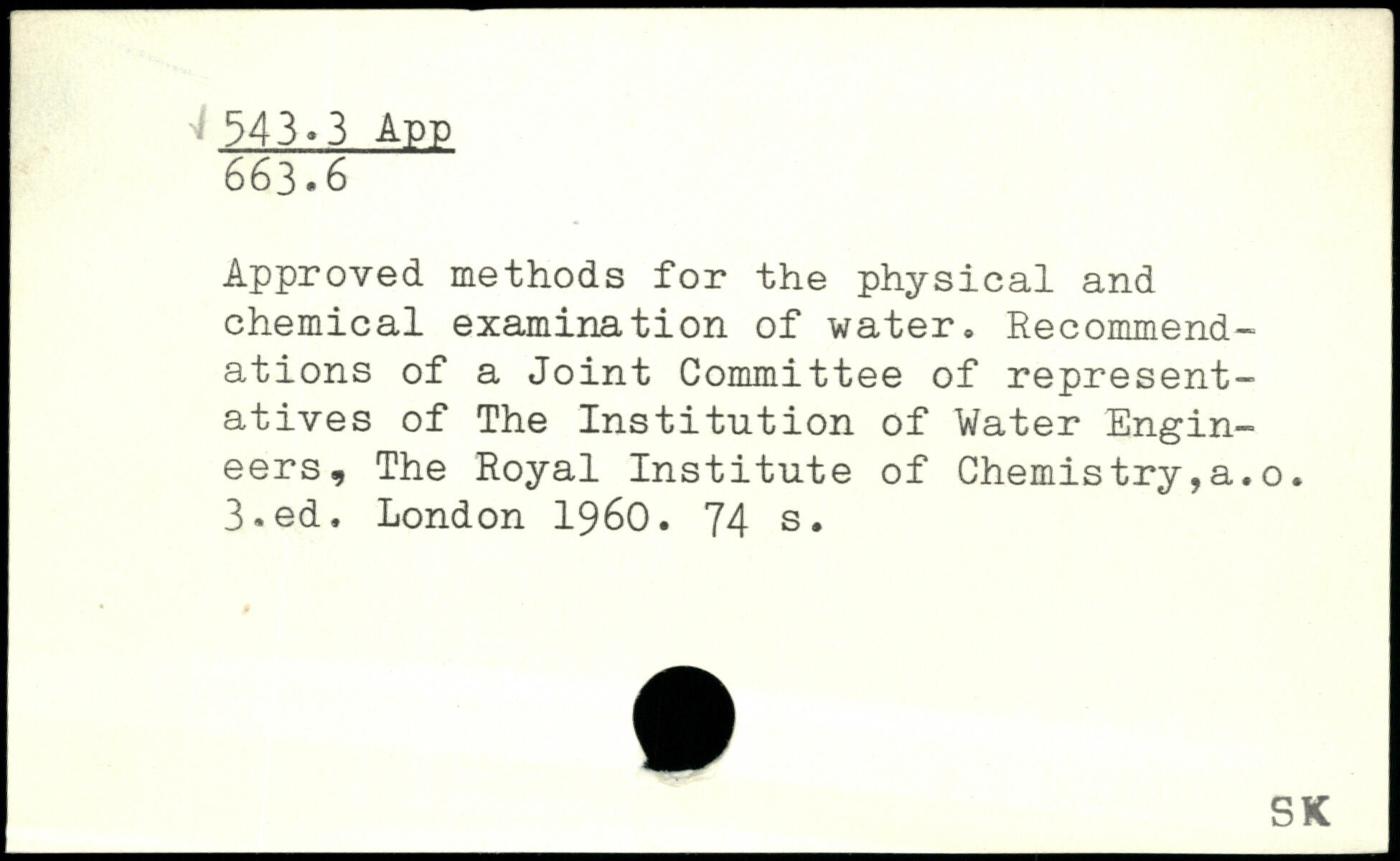 Approved methods for the physical and chemical examination of water. Recommendations of a Joint Committee of representatives of The Institution of Water Engineers, The Royal Institute of Chemistry,a.o. 3-ed.