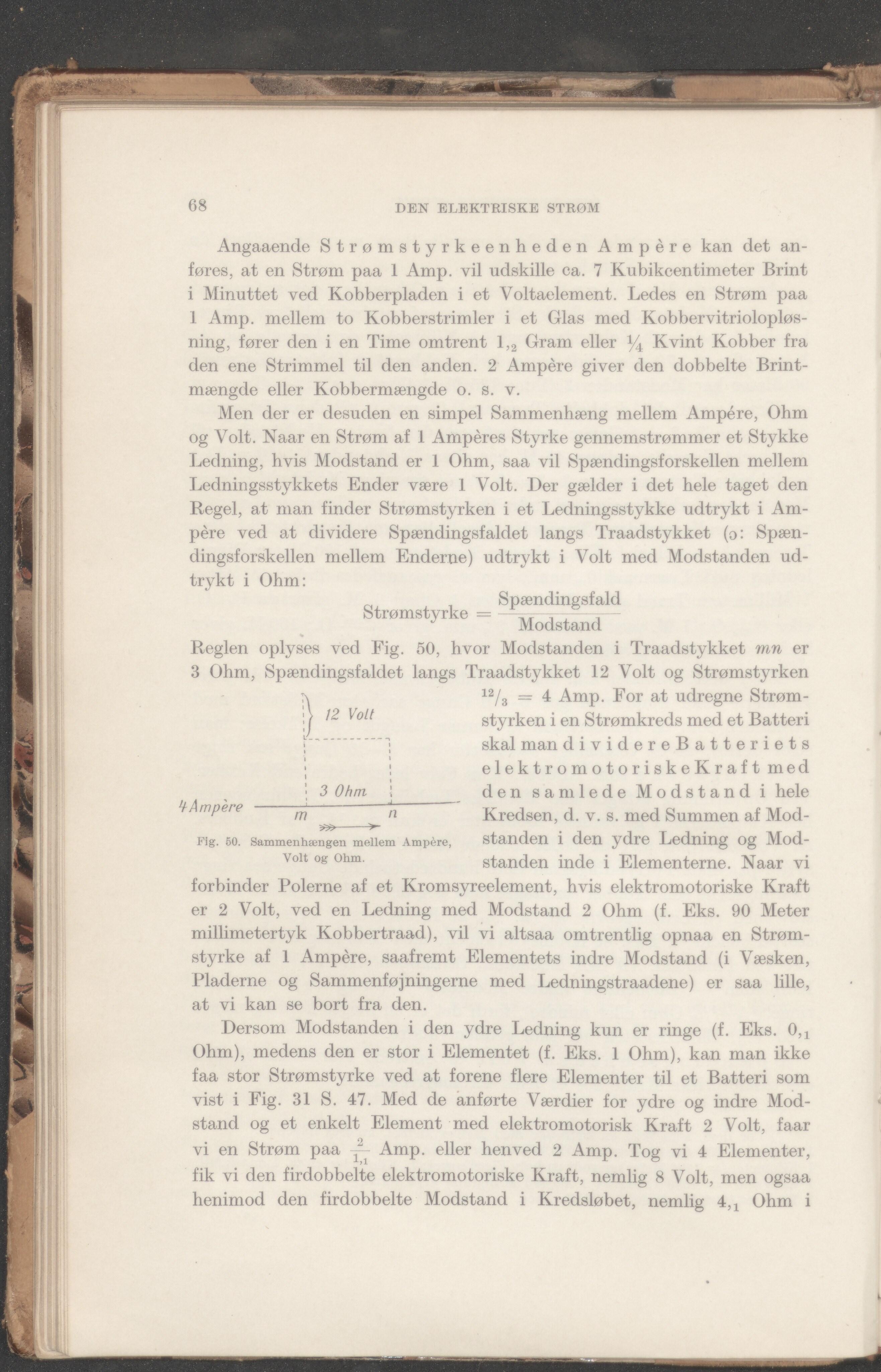 og Volt. Naar en Strøm af i Amperes Styrke gennemstrømmer et Stykke