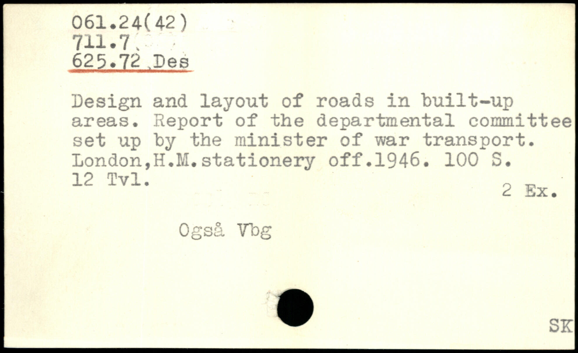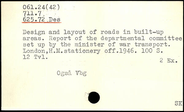 Design and layout of roads in built-up areas. Report of the departmental committee set up by the minister of war transport. London,H.M.stationery off.1946.