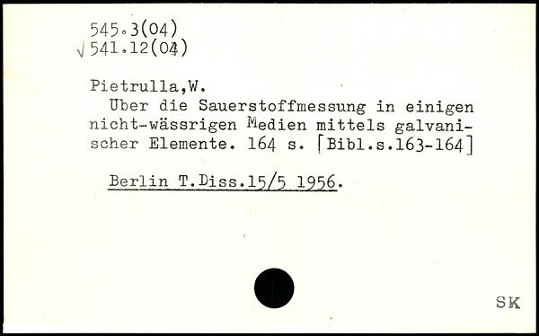 Uber die Sauerstoffmessung in einigen nicht-wässrigen Medien mittels galvanischer Elemente. I