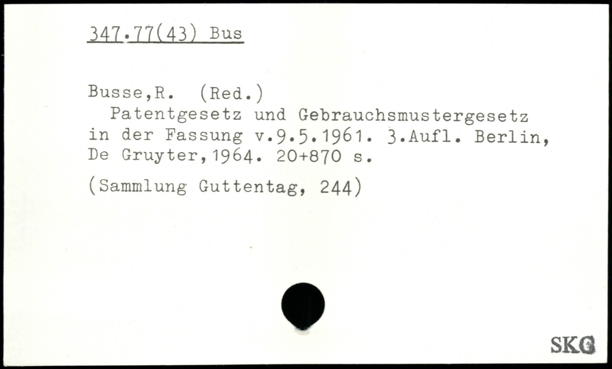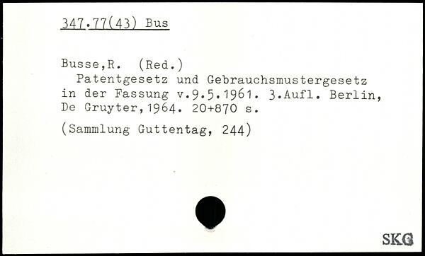 Patentgesetz und Gebrauchsmustergesetz in der Fassung v.9.5.1961. 3-Aufl.