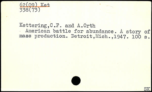Kettering,C,P. and A.Orth American battle for abundance. A story of mass production.