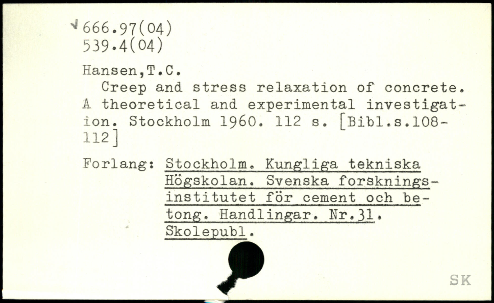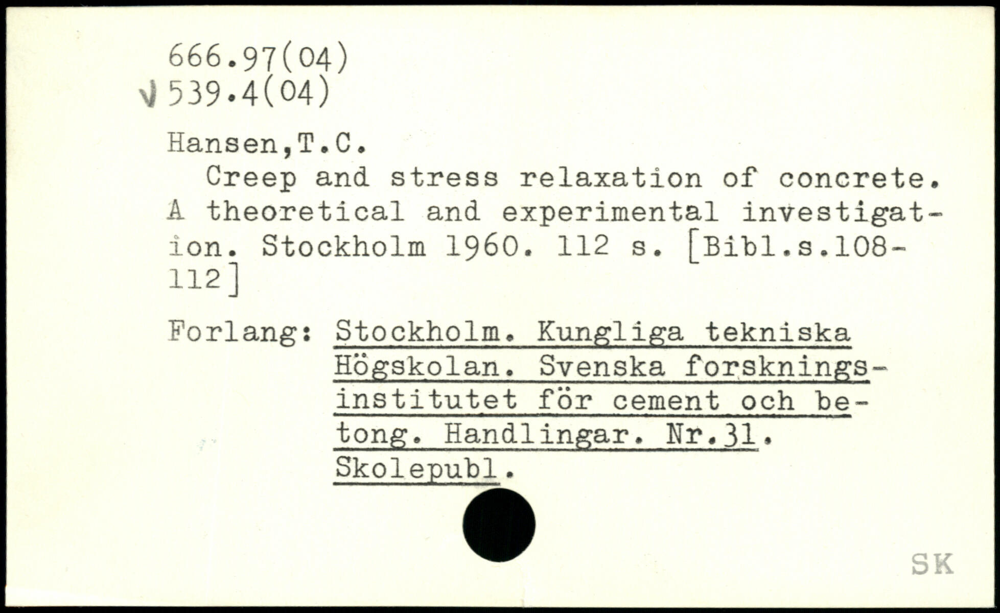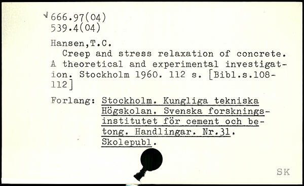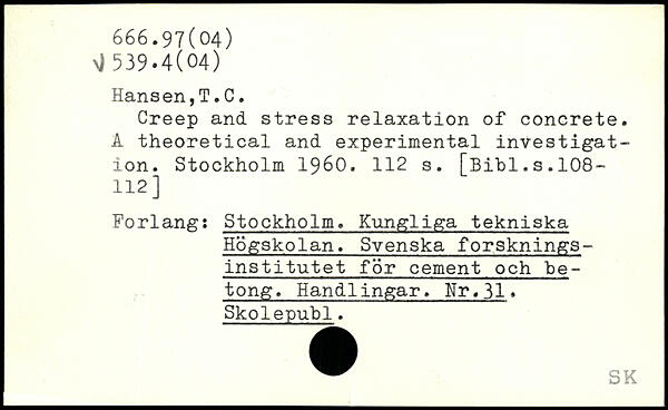 Creep and stress relaxation of concrete. A theoretical and experimental investigation.