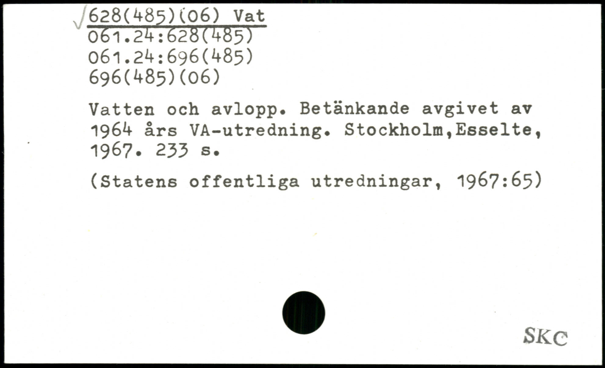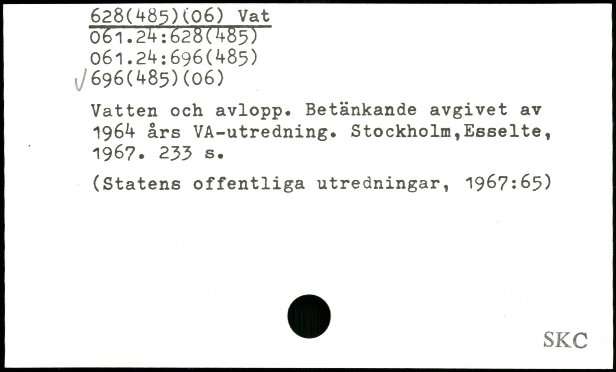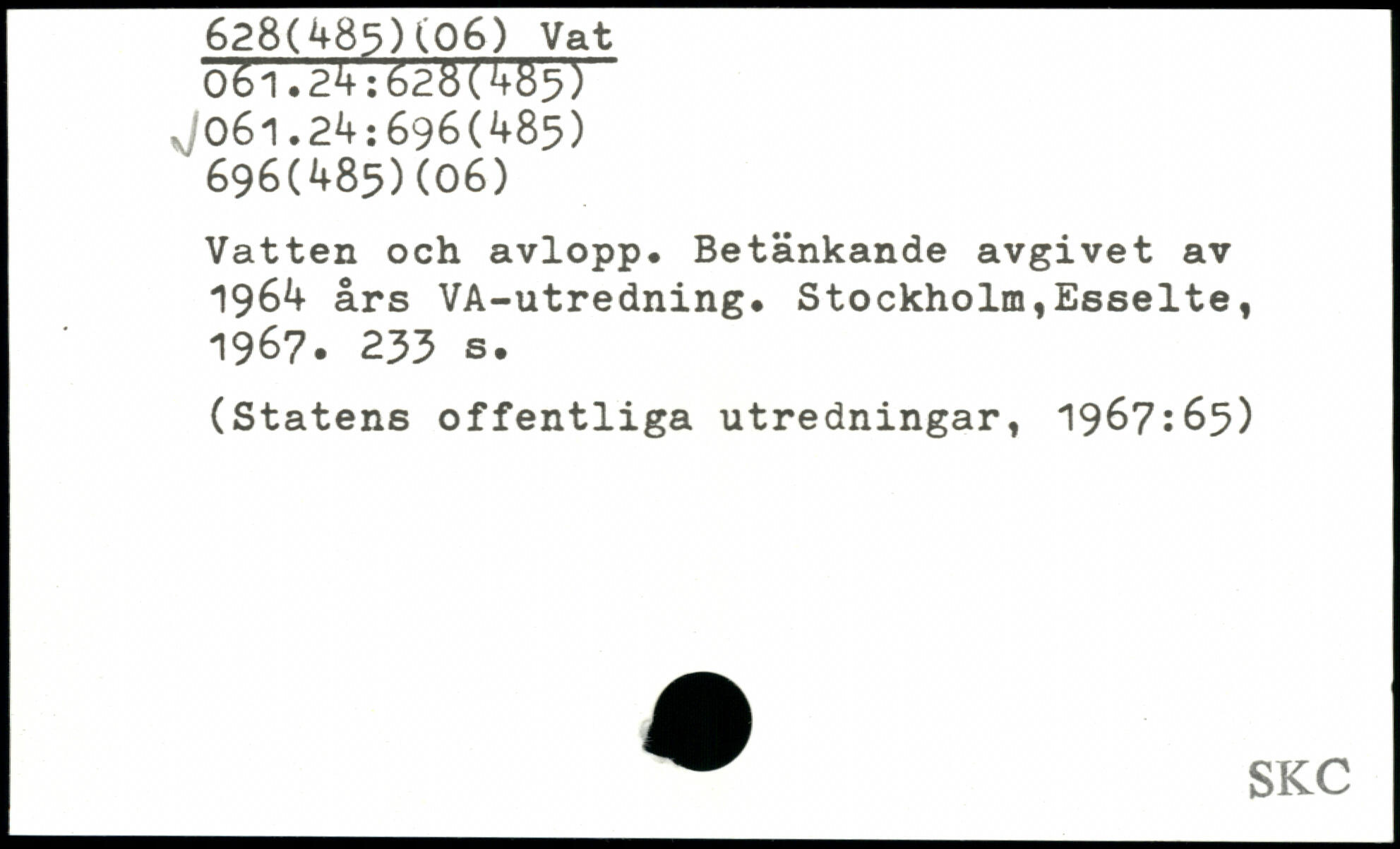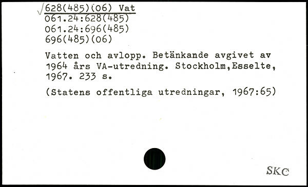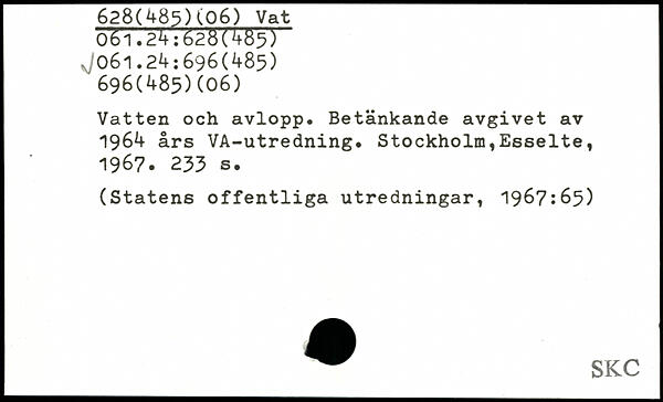 Vatten och avlopp. Betänkande avgivet av 1964 års VA-utredning.
