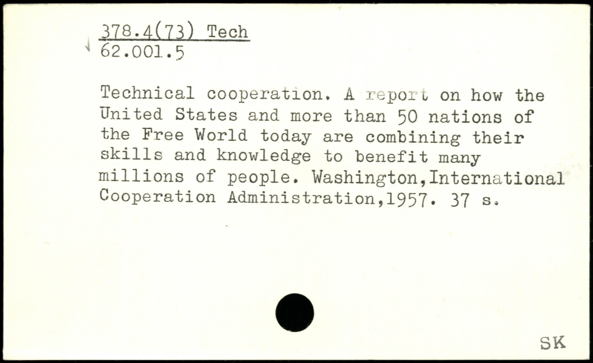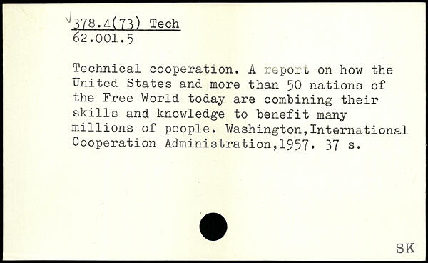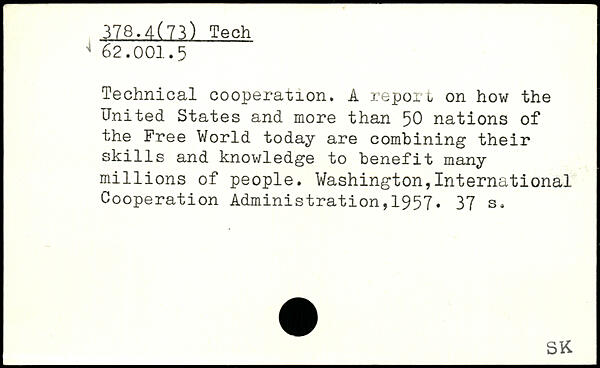 Technical cooperation. A report on how the United States and more than 50 nations of the Free World today are combining their skills and knowledge to benefit many m1111ons of people.