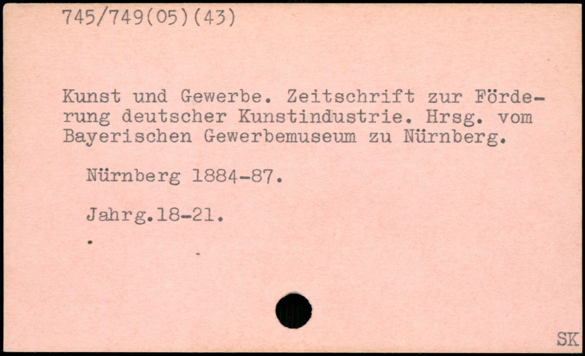 Kunst und G-ewerbe. Zeitschrift zur Förderung deutscher Kunstindustrie, Hrsg, vom Bayerischen G-ewerbemuseum zu Nürnberg. Nürnberg 1884-87. Jahrg. 18-21.
