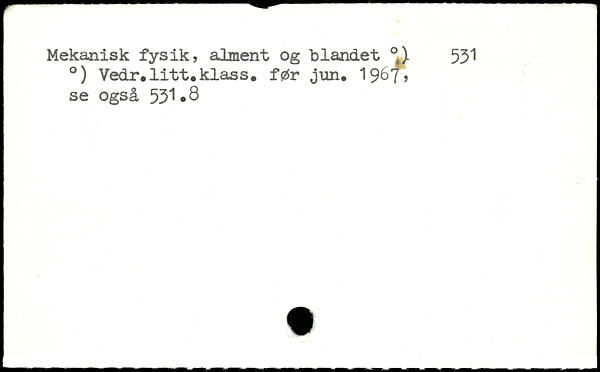 Mekanisk fysik, alment og blandet .A 531 .) Vedr.litt.klass. før jun. 1$6f> se også 53^ ,8