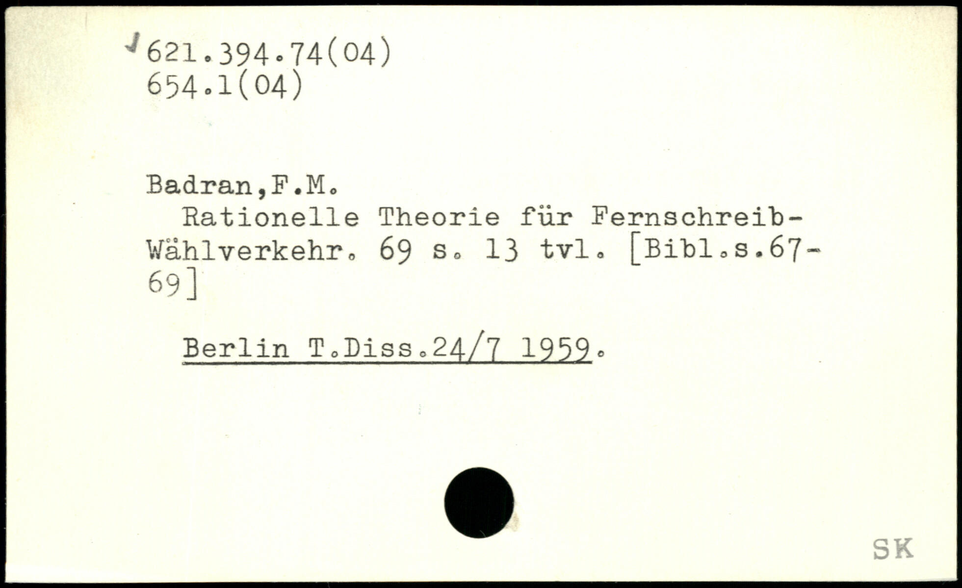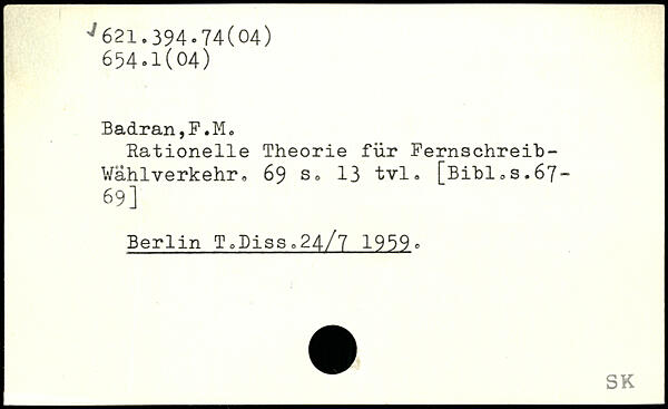 Rationelle Theorie für Fernschreih-Wählverkehr