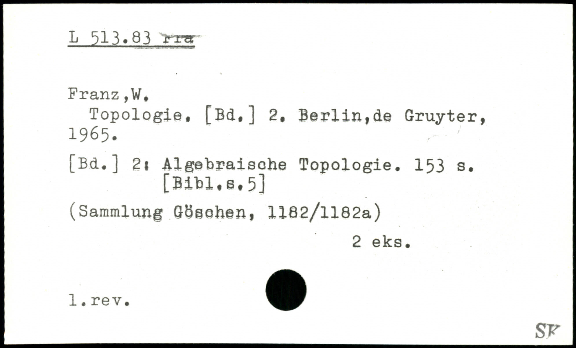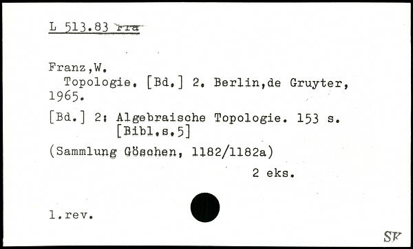 Topologie, [BcL,] 2, Berlin,de Gruyter, 1965. [Bd.] 2i Algebraische Topologie