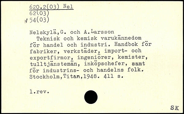 Teknisk och kemisk varukännedom för handel och industri. Handbok för fabriker, verkstäder, import- och exportfirmor, ingeniorer, kemister, tulltjänsteman, inköpschefer, samt för industrins- och handelns folk.