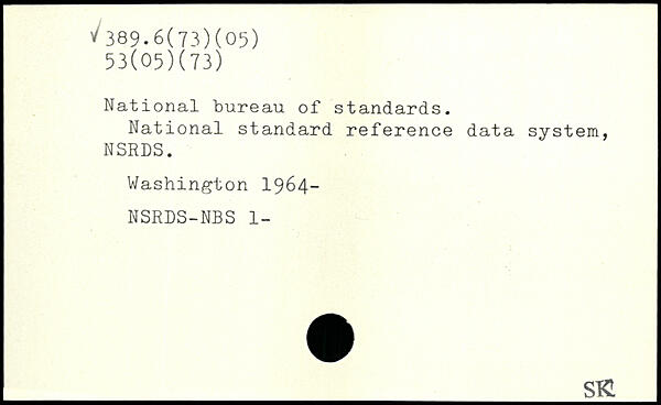 National bureau of standards. National standard reference data system, NSRDS.
