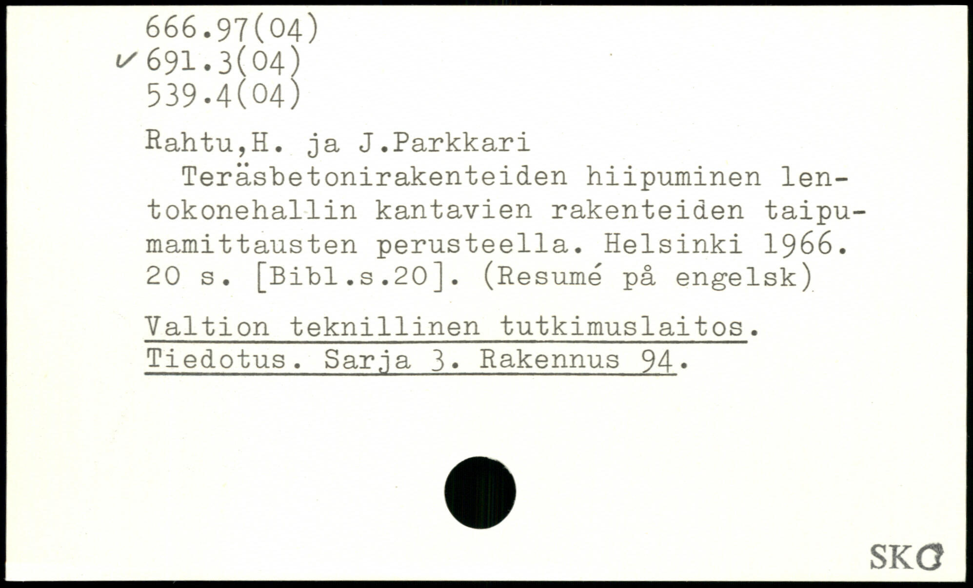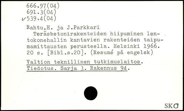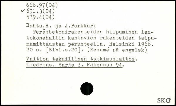 Rahtu,H. ja J.Parkkari Teräsbetonirakenteiden hiipuminen lentokonehallin kantavien rakenteiden taipu-mamittausten perusteella.