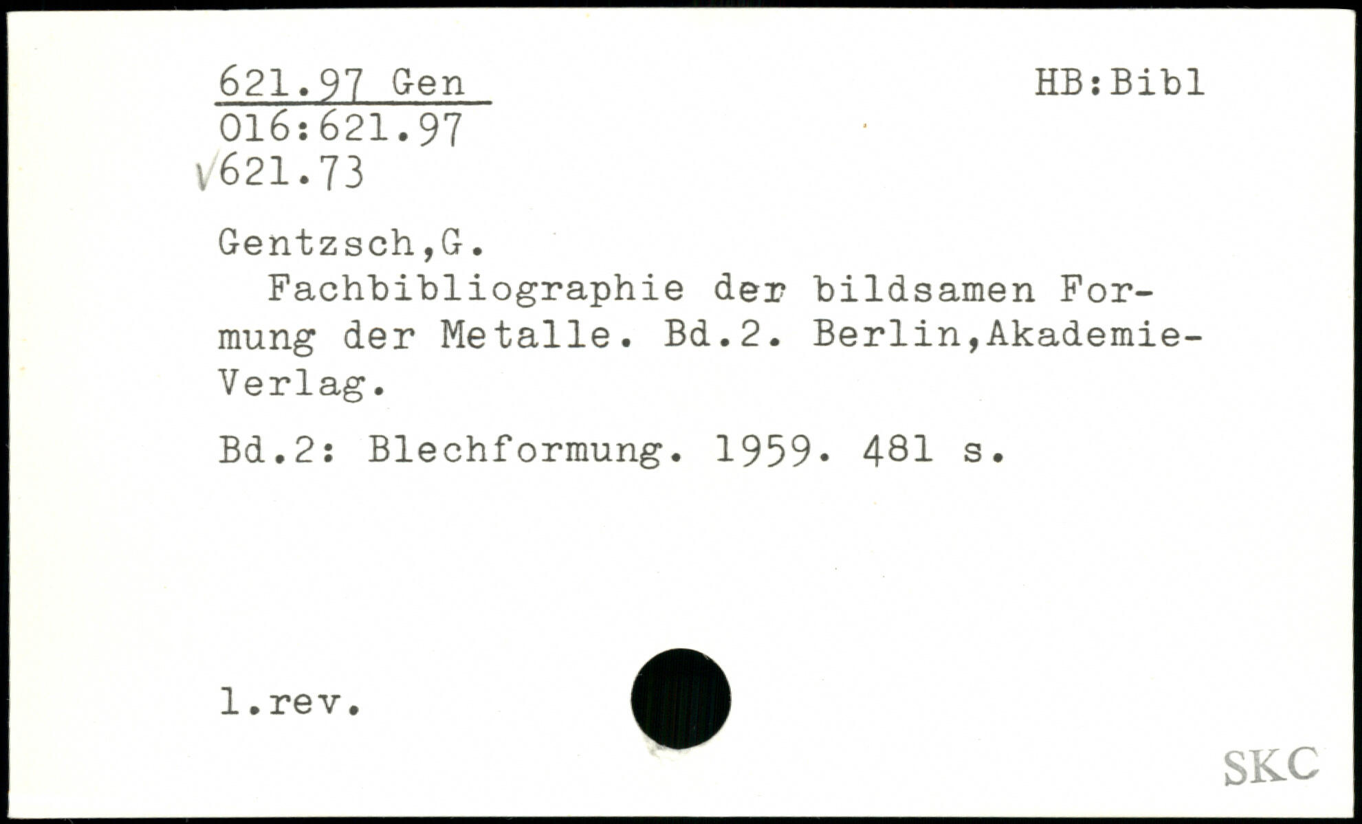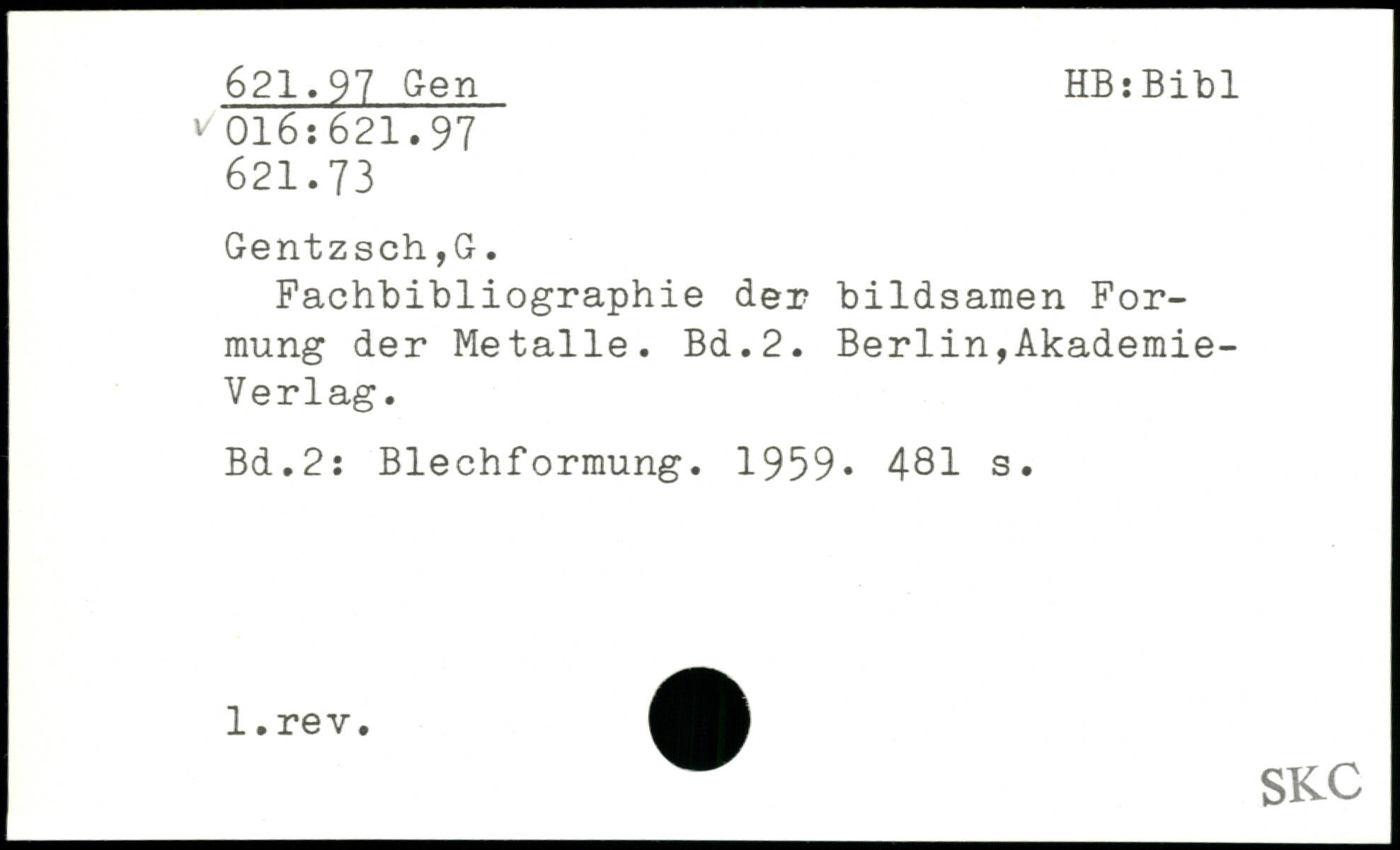 Fachbibliographie der bildsamen Formung der Metalle.