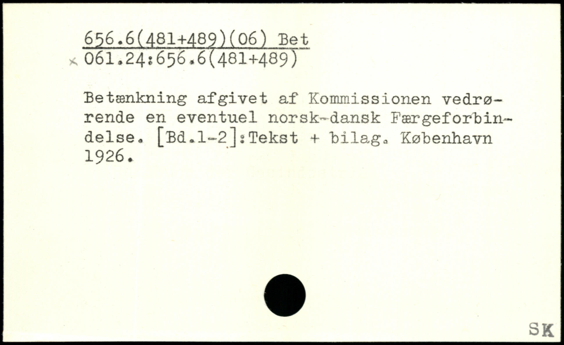 Betænkning afgivet af Kommissionen vedrørende en eventuel norsk-dansk Færgeforbindelse, [