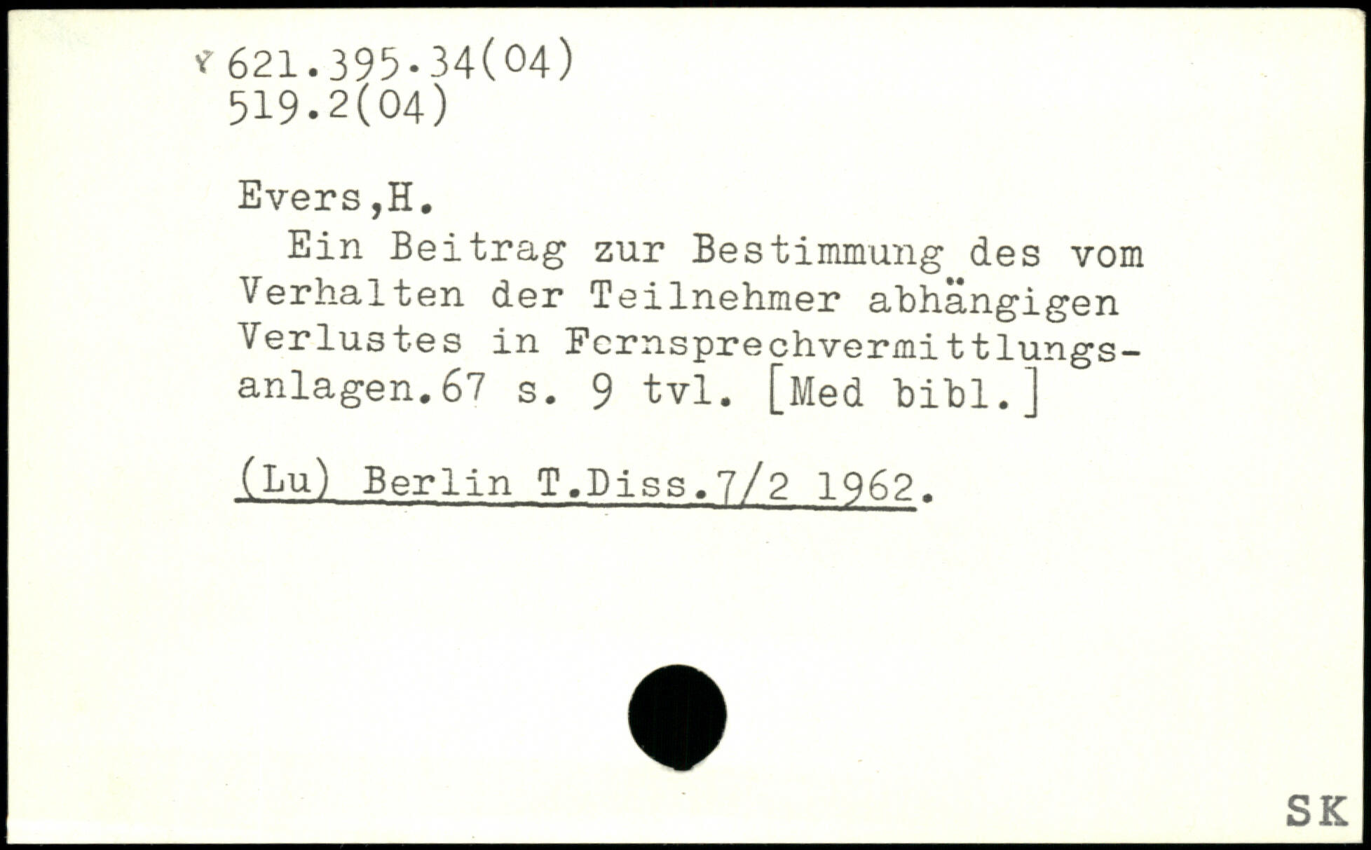 Ein Beitrag zur Bestimmung des vom Verhalten der Teilnehmer abhängigen Verlustes in Fcrnsprechvermittlungs-anlagen.