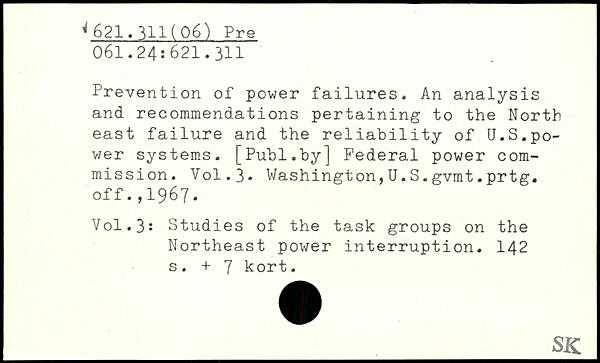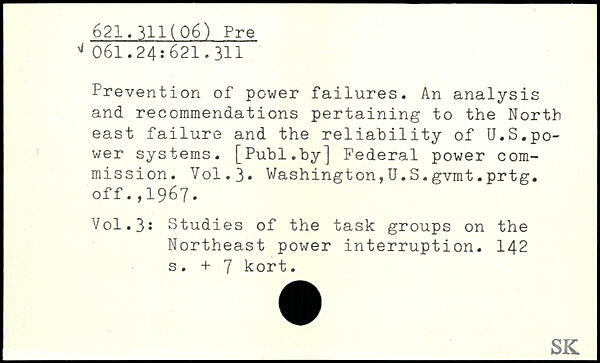 Prevention of power failures. An analysis and recommendations pertaining to the North east failure and the reliability of U.S.power systems.