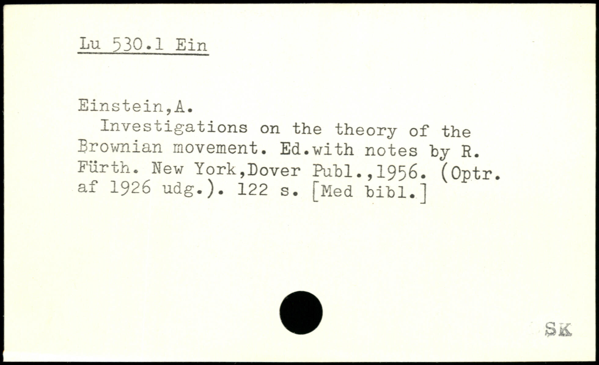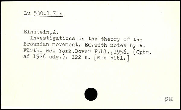 Investigations on the theory of the Brownian movement. Ed.with notes by R. Fürth.