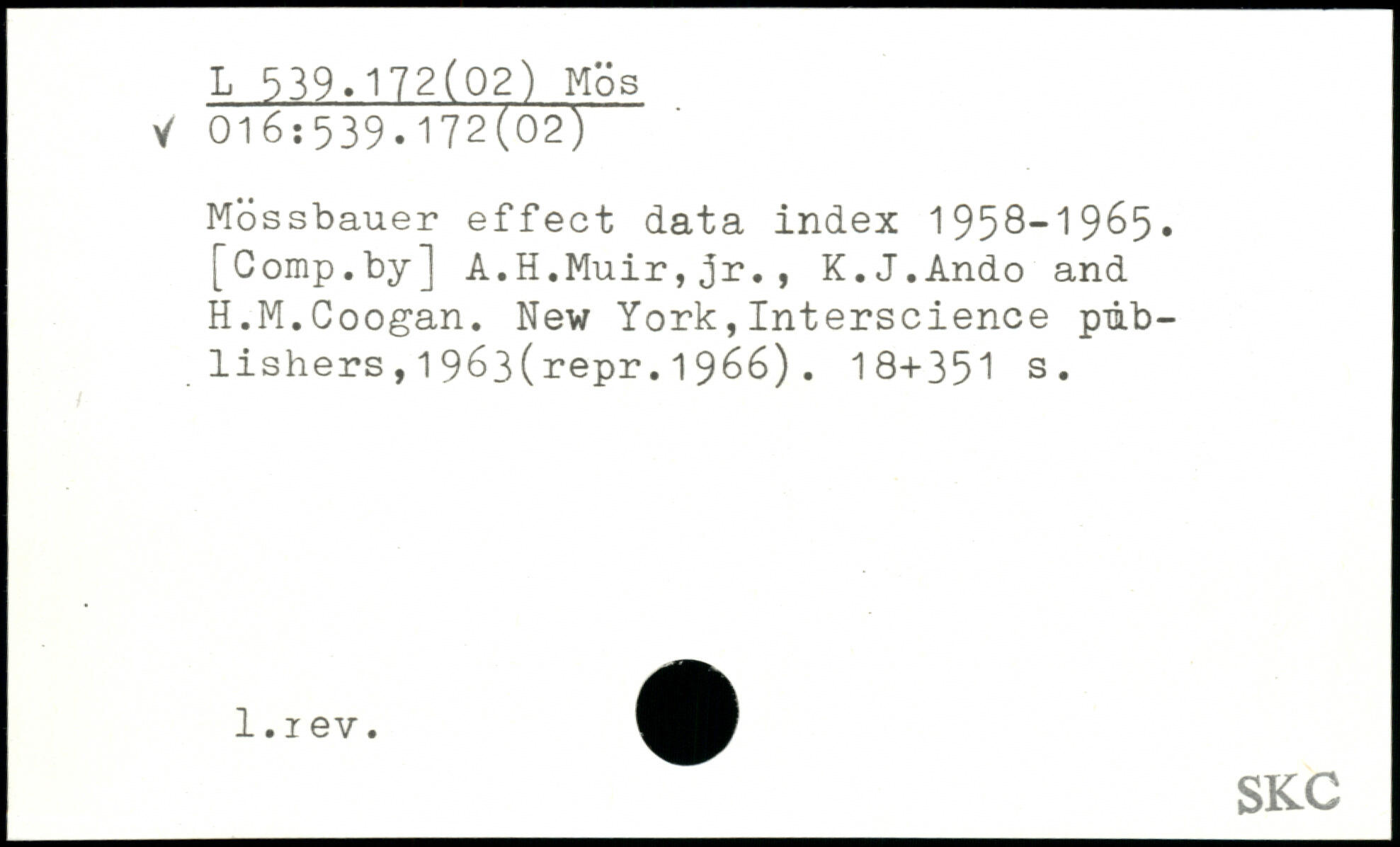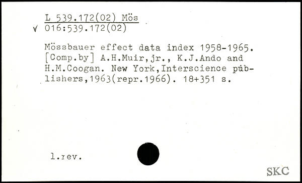 Mossbauer effect data index 1958-1965.