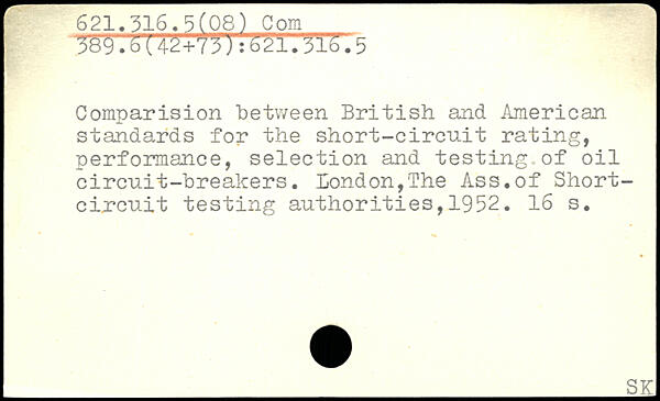 Comparision between British and American standards for the short-circuit rating, performance, selection and testing of oil circuit-breakers. London,The Ass.of Short-circuit testing authorities,1952.
