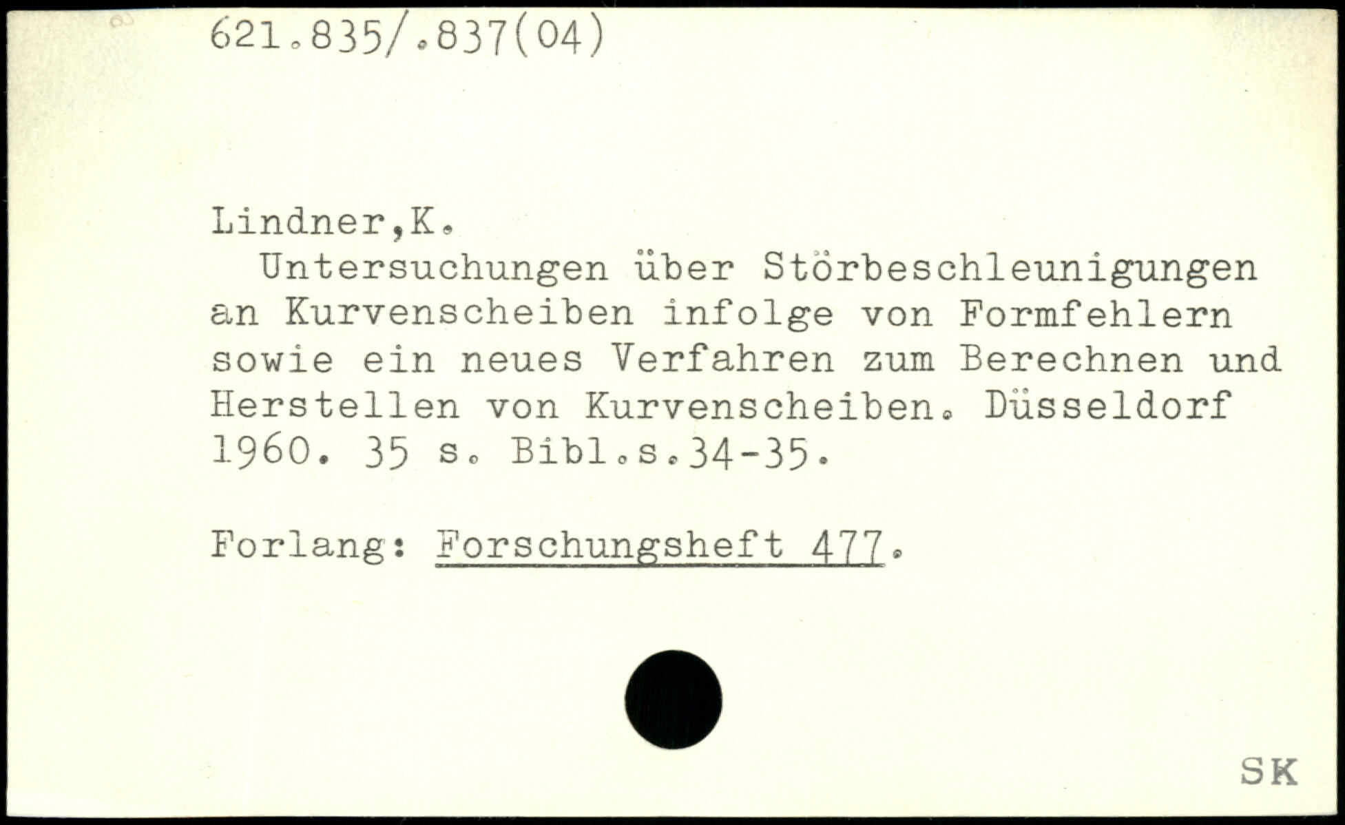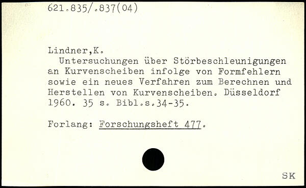 Untersuchungen über Störbeschleunigungen an Kurvenscheiben infolge von Formfehlern sowie ein neues Verfahren zum Berechnen und Herstellen von Kurvenscheibene Düsseldorf 1960.