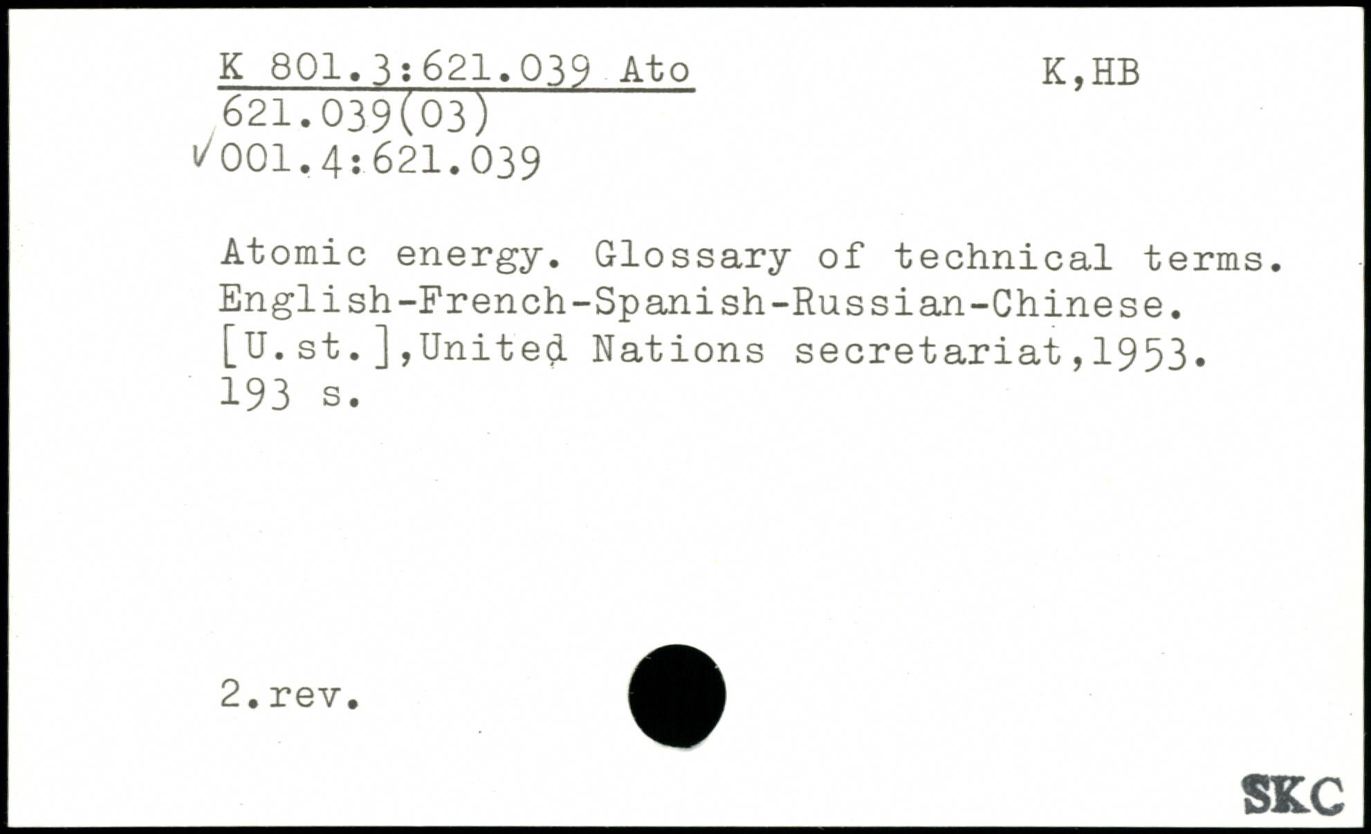 Atomic energy. Glossary of technical terms. English-French-Spanish-Russian-Chinese.
