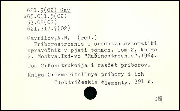 Priborostroenie i sredstva avtomatiki spravocnik v pjati toraach. Tom 2, kniga 2. Moskva,Izd-vo "Masinostroenie",1964. Tom 2îKonstrukcija i rascet priborov. Kniga 2 :Izmeritel'nye pribory i ich êlektriceskie eiementy.