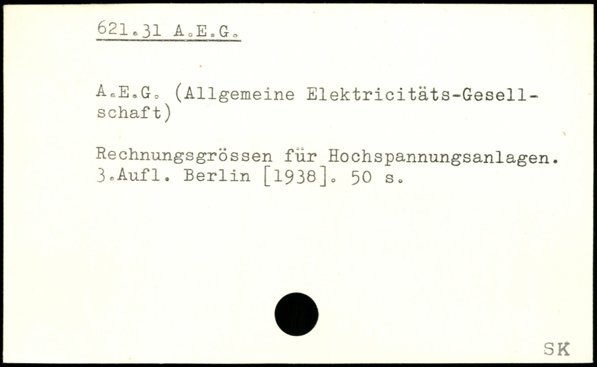 A^E.Go (Allgemeine Elektricitäts-Gesellschaft) Rechnungsgrössen für Hochspannungsanlagen.