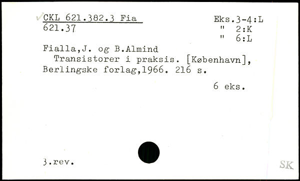 Fialla,J. og- B.Almind Transistorer i praksis. [København], Berlingske forlag,1966.