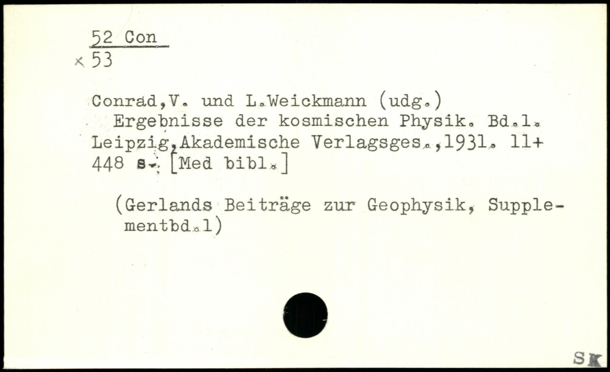 Conräd,V. und L,.Weickmann (udg.) Ergebnisse der kosmischen Physik. Bd.l. Leipzig,Akademische Yerlagsges^,, 1931. 11+