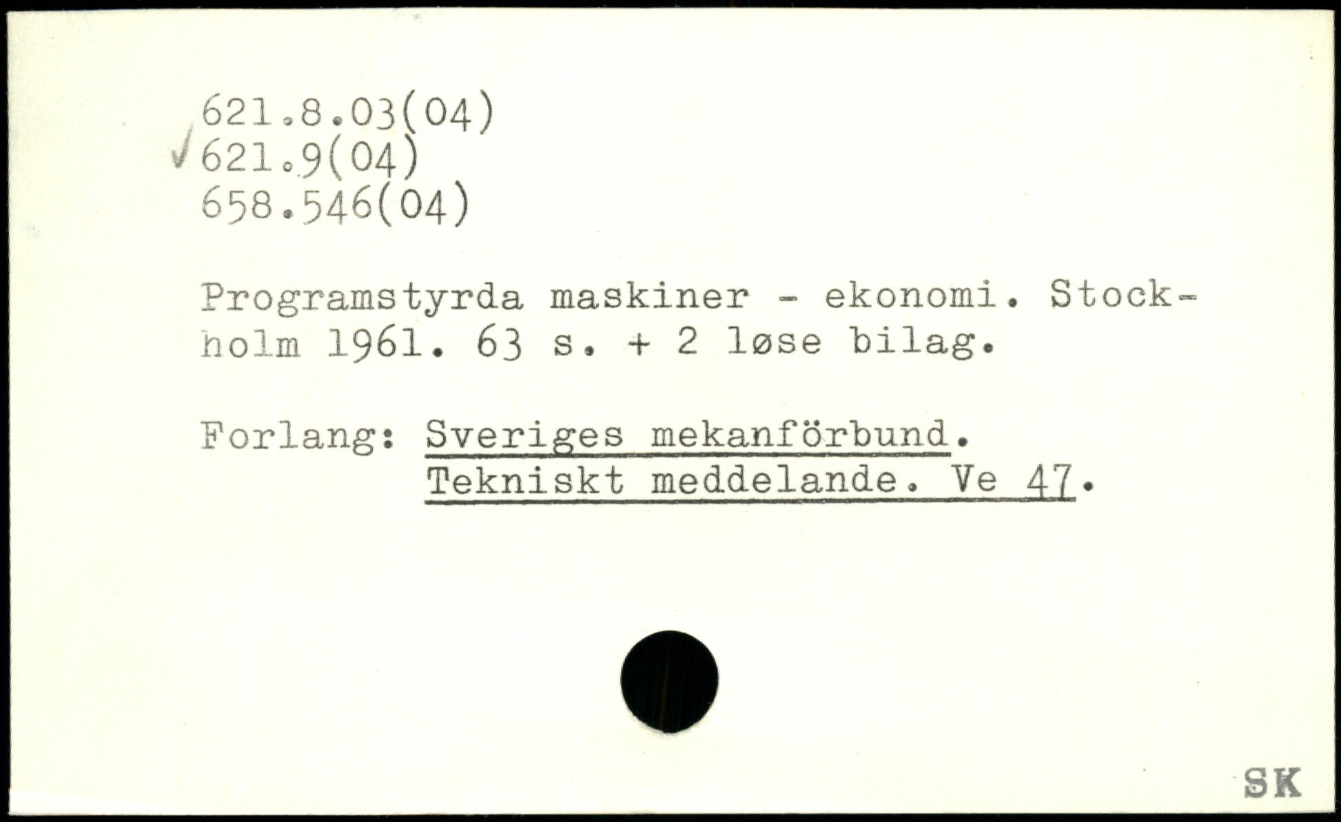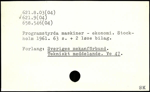 Programstyrda maskiner - ekonomi. Stock-nolm 1961.