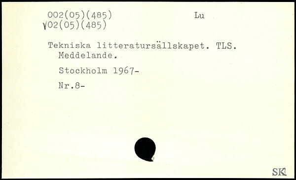 Tekniska litteratursällskapet. TLS. Meddelande.