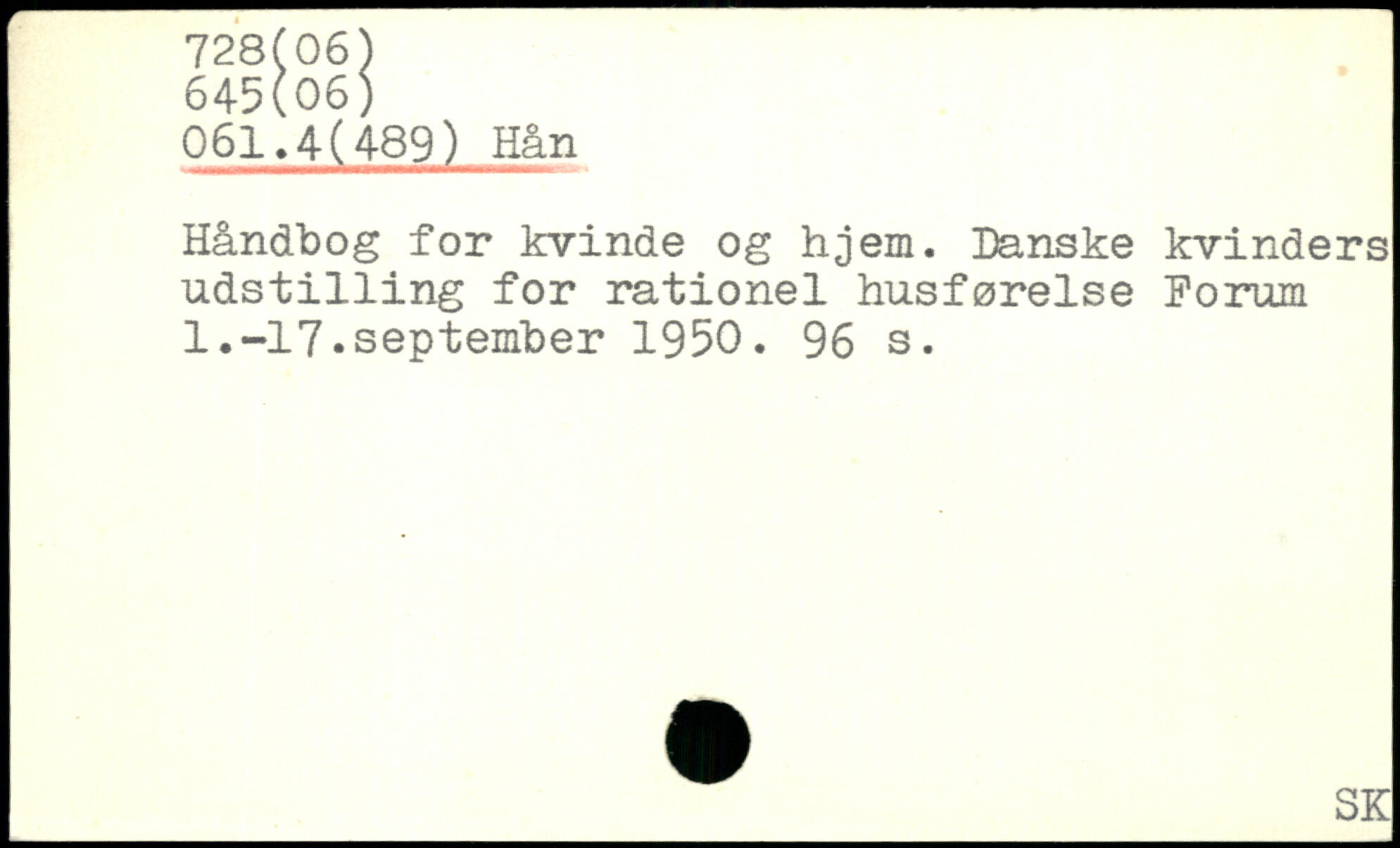 Håndbog for kvinde og hjem. Danske kvinders udst1111ng for rationel husførelse Forum 1.-17.september 1950.