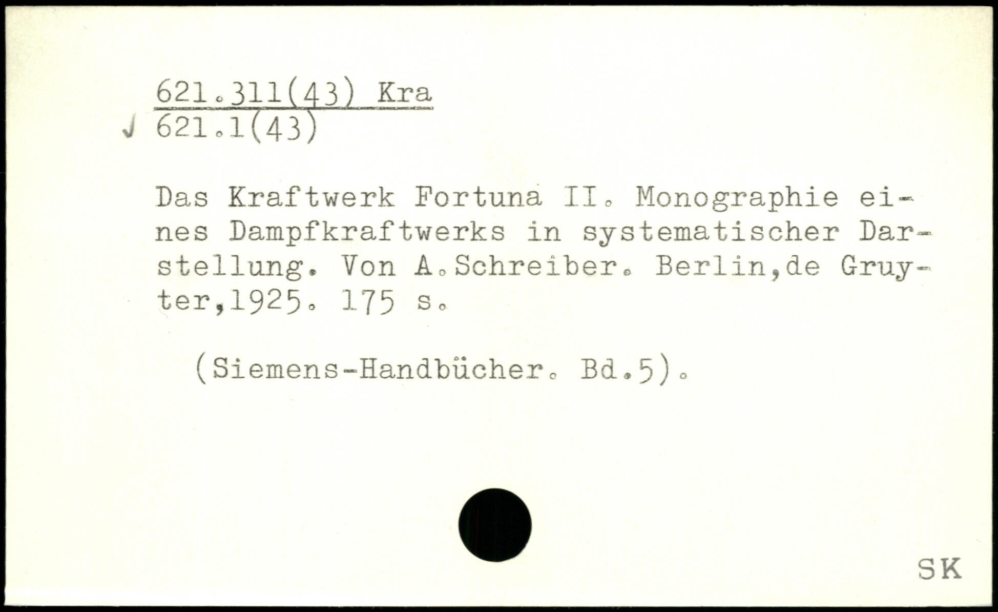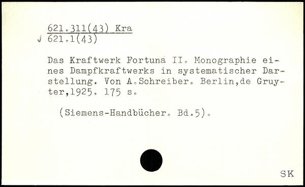 Das Kraftwerk Fortuna II, Monographie eines Dampfkraftwerks in systematischer Darstellung. Von Ad Schreiber,, Berlin,de Gruyter, 1925.