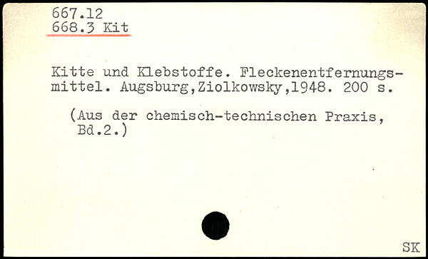 Kitte und Klebstoffe. Fleckenentfemungs-mittel.