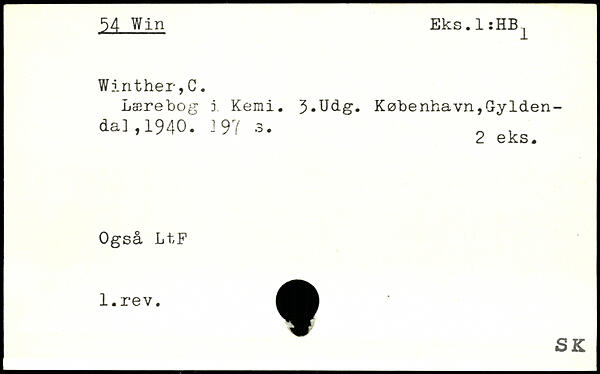 Lærebog i Kemi. 3.Udg. København,Gylden- da:,194.: 397 3. 2eks. Også LtF