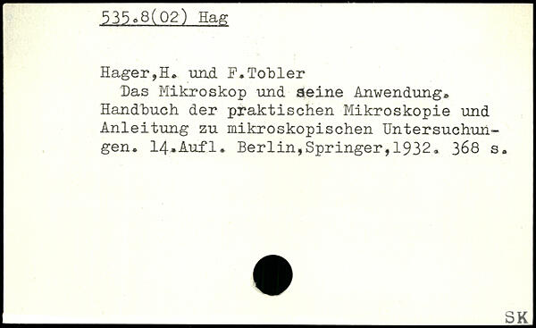 Das Mikroskop und aeine Anwendung, Handbuch der praktischen Mikroskopie und Anleitung zu mikroskopischen Untersuchungen.