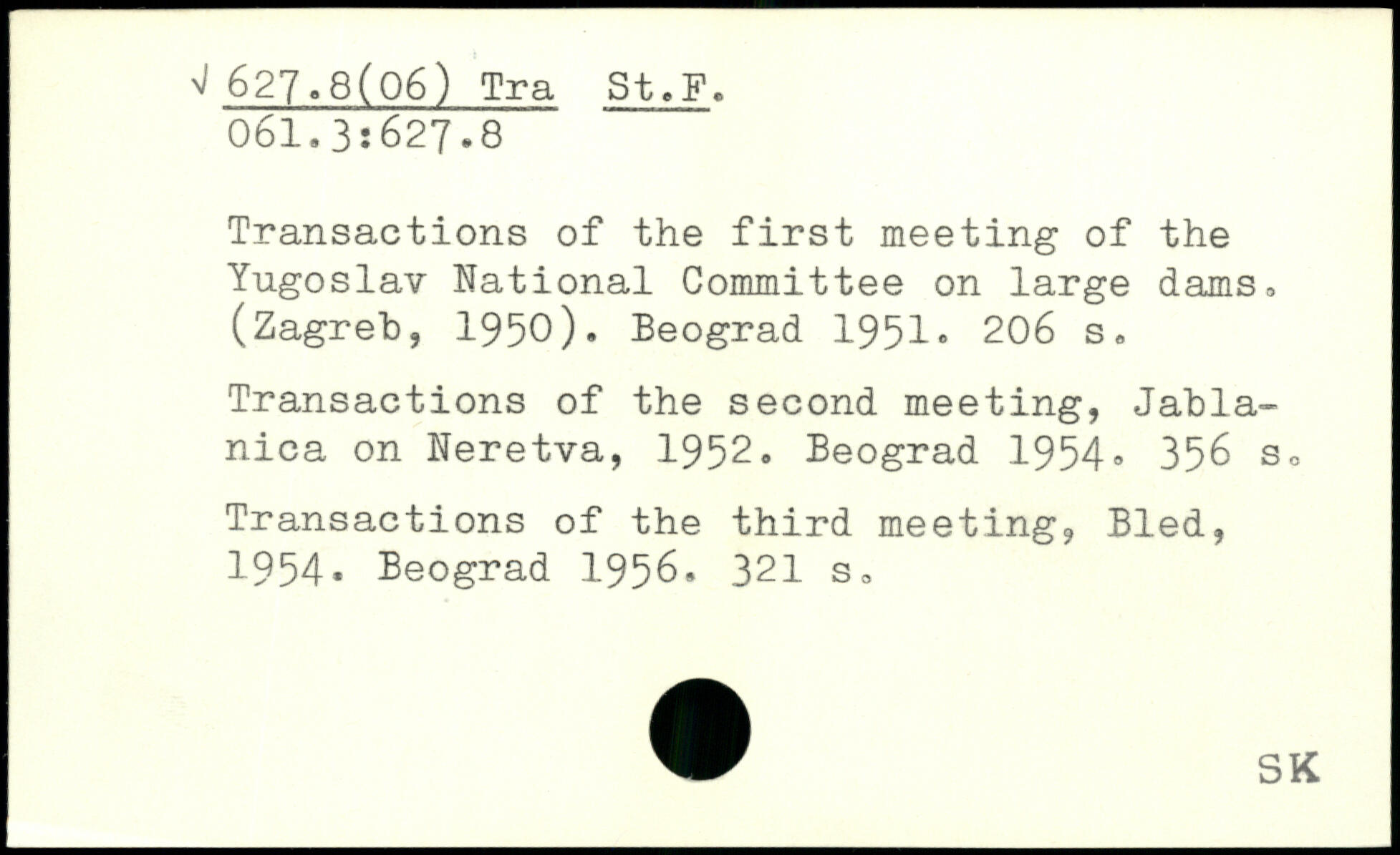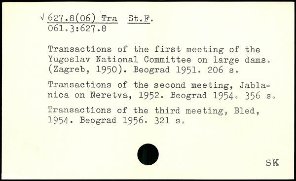 Transactions of the first meeting of the Yugoslav National Committee on large dams. (Zagreb, 1950).
