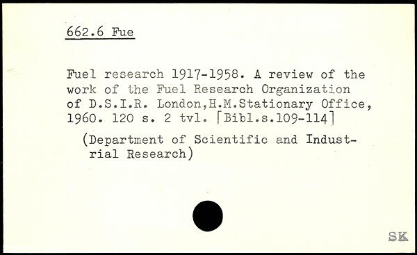 Fuel research 1917-1958. A review of the work of the Fuel Research Organization of D.S.I.R. London,H.M.Stationary Office, 1960.