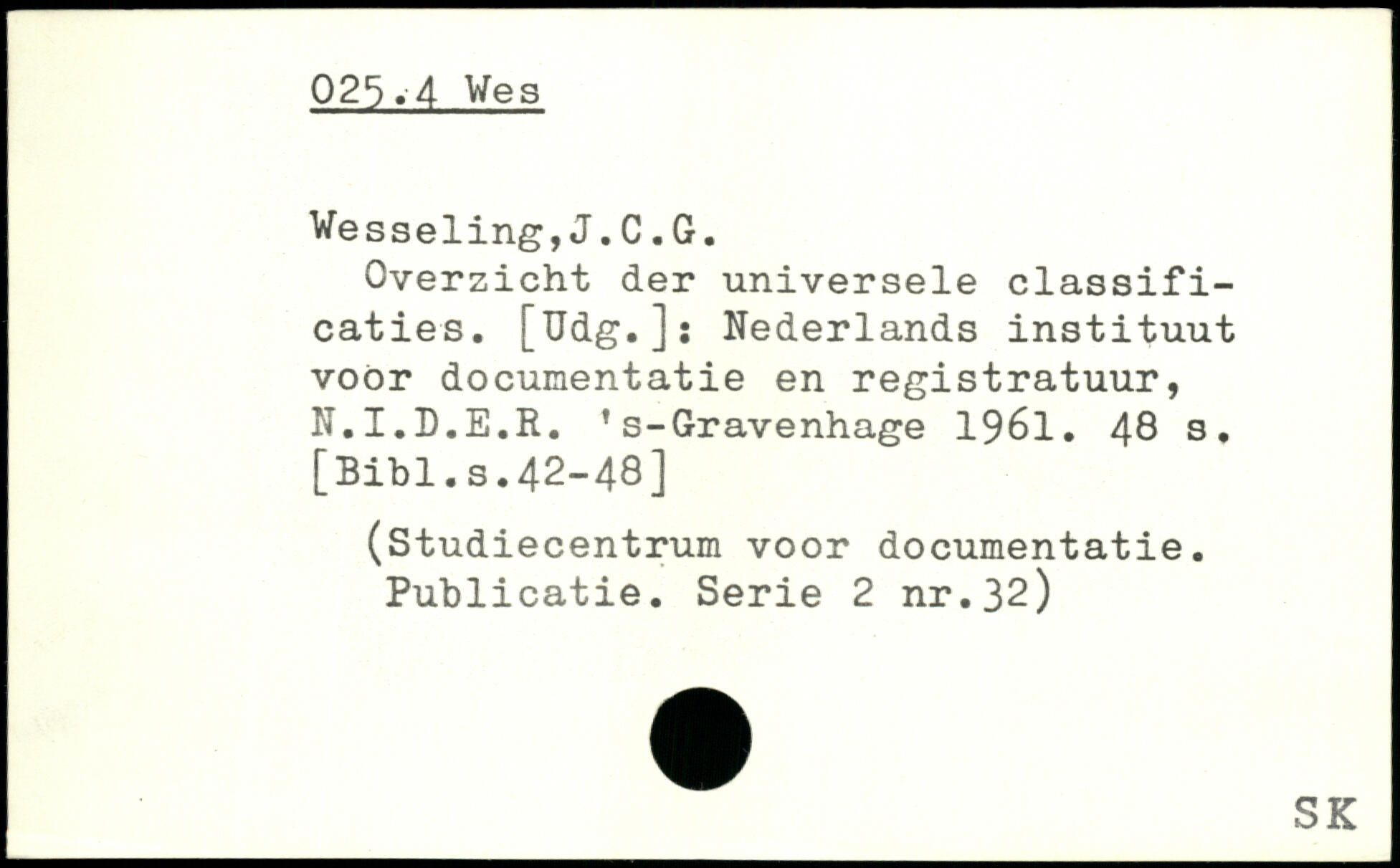 Overzicht der universele classifi-caties. [Udg.]ï Nederlands instituut voôr documentatie en registratuur, N.I.D.E.R. .s-Gravenhage 1961.