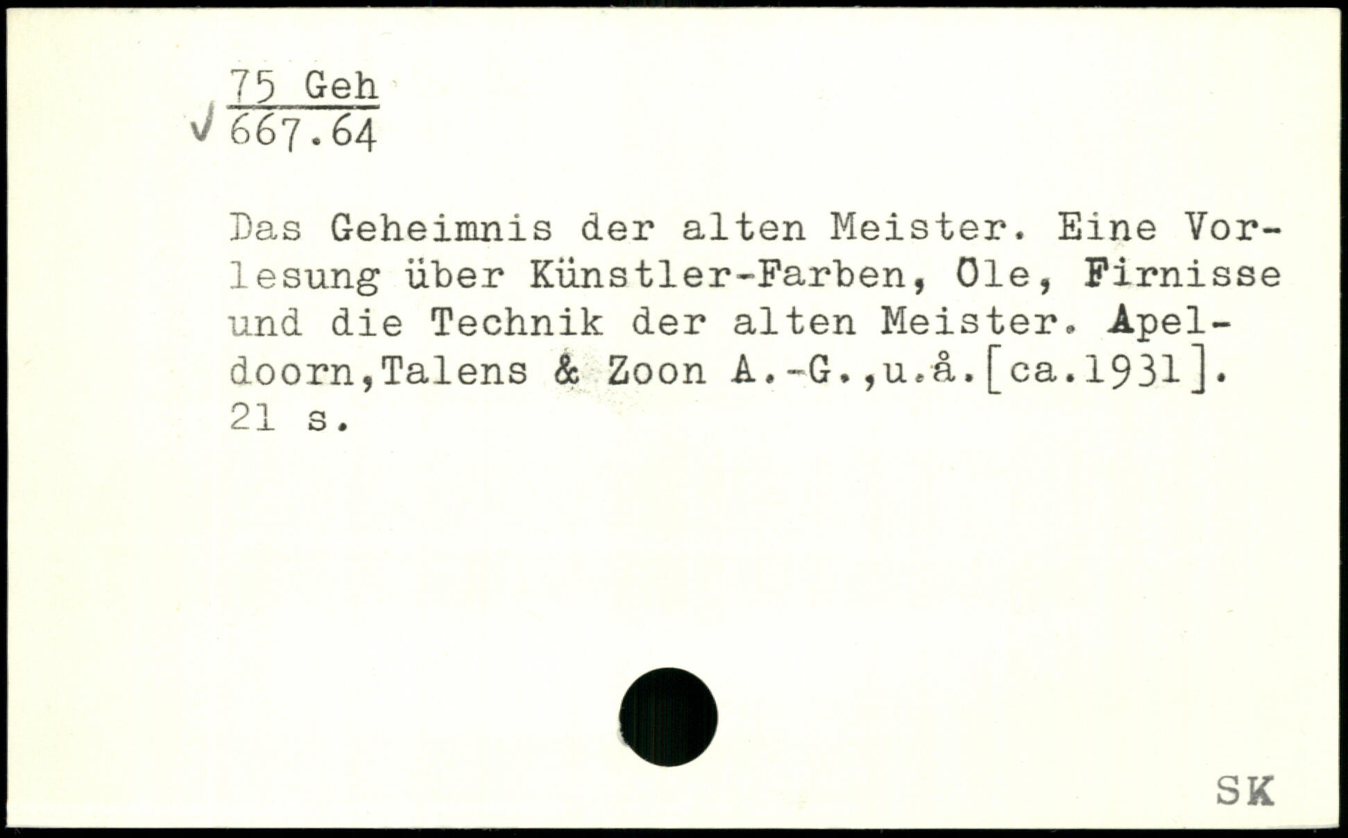 Das Geheimnis der alten Meister. Eine Vorlesung über Künstler-Farben, öle, Firnisse und die Technik der alten Meister. Apeldoorn,Talens & Zoon A.-G.,u.a.[ca.1931].