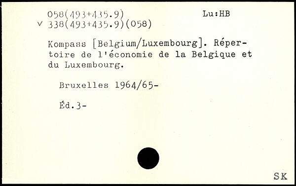 Kompass [Belgium/Luxembourg]. Répertoire de l'économie de la Belgique et du Luxembourg.
