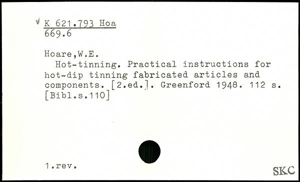 Hot-tinning. Practical instructions for hot-dip tinning fabricated articles and components. [