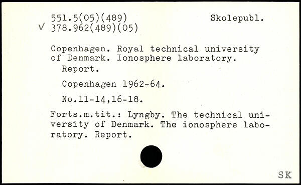 Copenhagen. Royal technical university of Denmark. Ionosphere laboratory. Report.