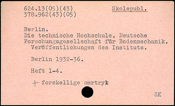 Die technische Hochschule. Deutsche Borschun.gsgesellschaft für Bodenmechanik. Veröffentlichungen des Instituts.