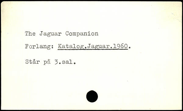 r I The Jaguar Companion Forlang: Katalog.Jaguar.1960. Står på 3.sal.