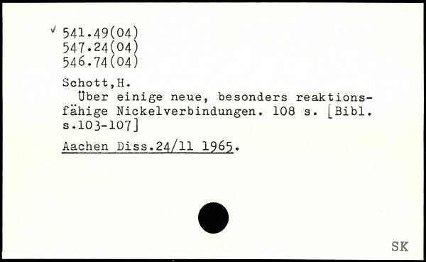 Uber einige neue, besonders reaktionsfähige Nickelverbindungen.