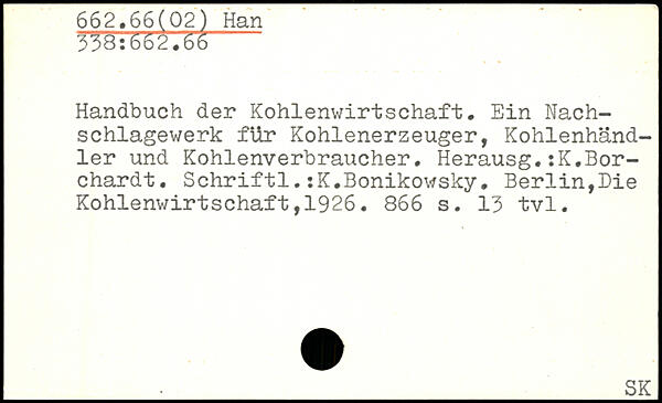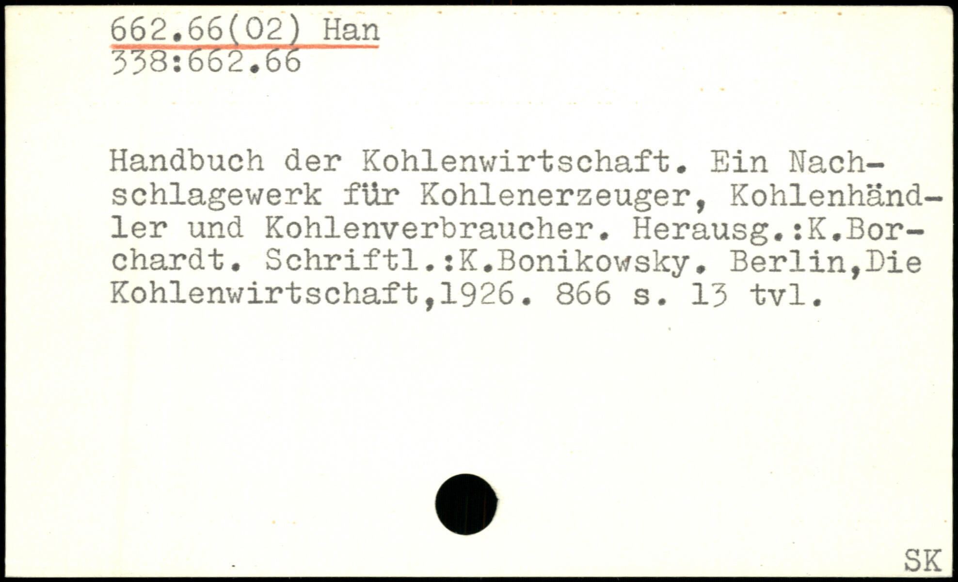 Handbuch der Kohlenwirtschaft. Ein Nachschlagewerk für Kohlenerzeuger, Kohlenhändler und Kohlenverbraucher. Herausg.:K.Bor-chardt. Schriftl.:K.Bonikowsky.