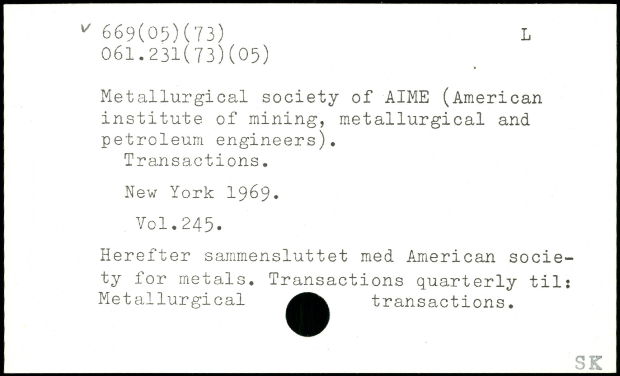 Metallurgical society of AIME (American institute of mining, metallurgical and petroleum engineers). Transactions.