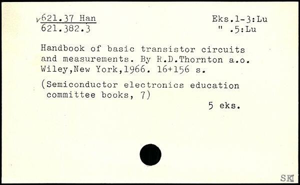 Handbook of basic transistor circuits and measurements. By R.D.Thornton a.o.