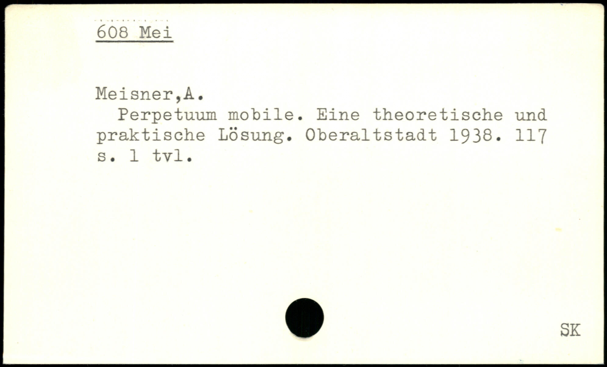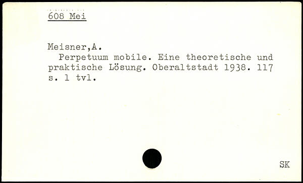 Perpetuum mobile. Eine theoretische und praktische Lösung. Oberaltstadt 1938